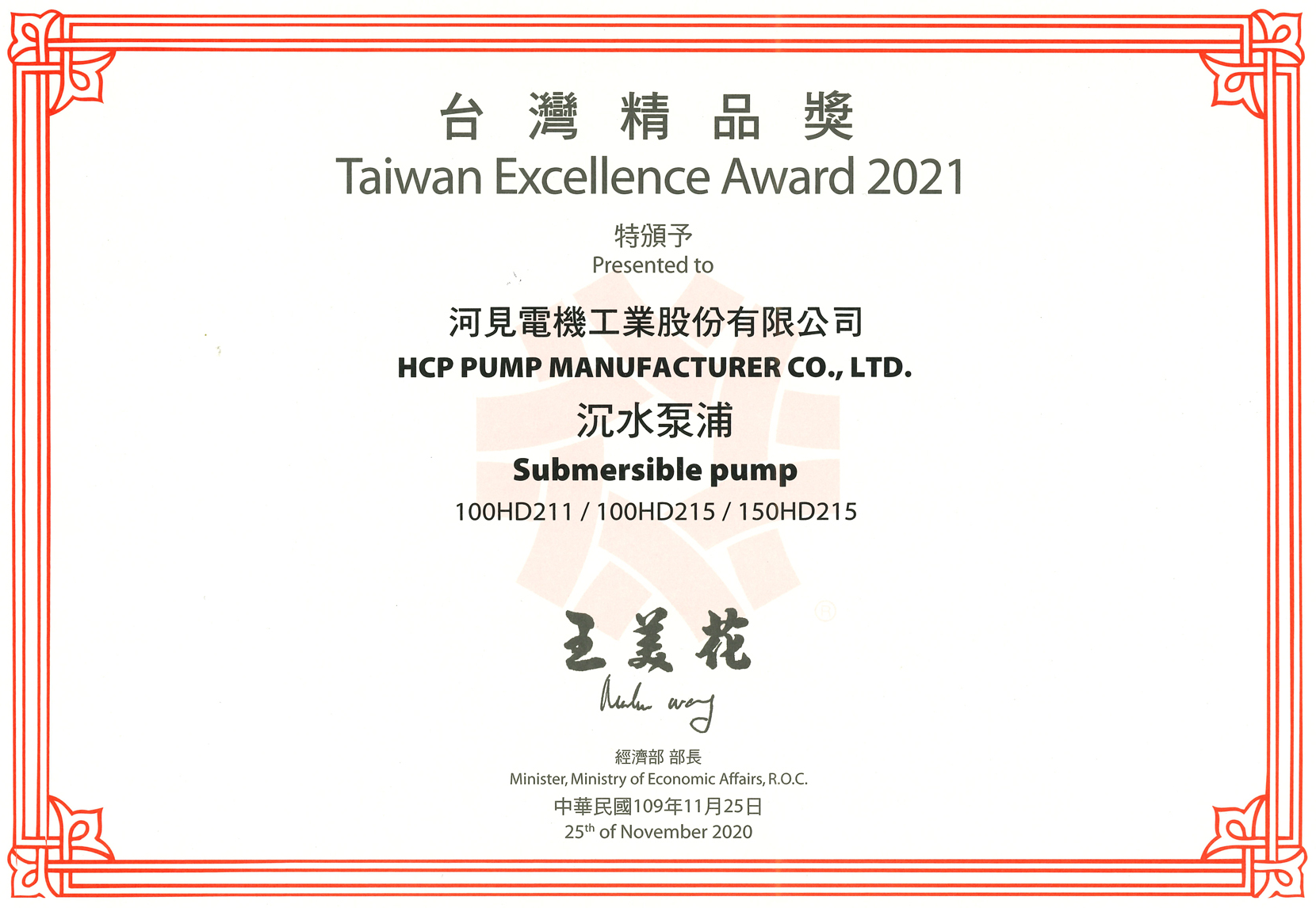 Selamat & Sukses! Kami dengan senang hati mengumumkan bahwa seri HD HCP - pompa pengeringan celup telah diberikan 29th Taiwan Excellence Award!